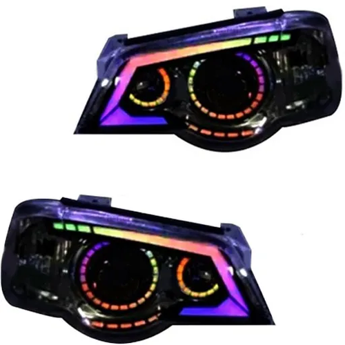 چراغ جلو اسپرت فول کالر مخصوص پراید 111 با قاب داخل مشکی و قابلیت کنترل رنگها از طریق بلوتوث؛ انتخابی مناسب برای ارتقاء نمای ظاهری و تیونینگ خودرو.