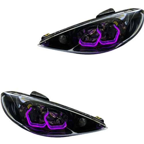 چراغ جلو اسپرت مناسب برای پژو 206 که ظاهر خودرو را بهصورت چشمگیر بهبود میبخشد. این مجموعه به صورت دو عددی و بدون موتور عرضه میشود و ترکیب رنگ بنفش با داخل مشکی ظاهری متفاوت و اسپرت ایجاد میکند.